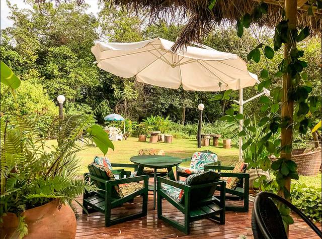 Temos uma piscina natural que passa por nosso jardim e o som das águas que caem 24 horas pelas pedras proporciona um sono repousante e tranquilo.